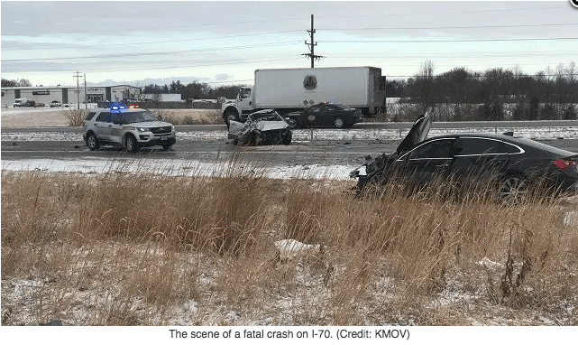 St. Charles County authorities responded to a fatal, two-vehicle crash that closed all eastbound lanes on Interstate 70 near Foristell Monday morning.